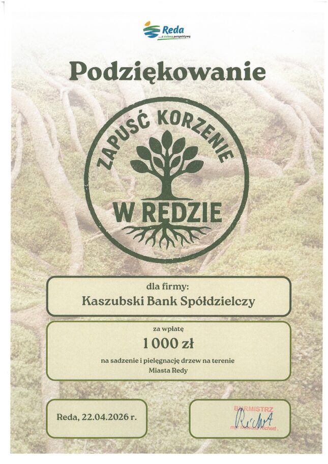 Dzisiaj, w Dniu Ziemi, Kaszubski Bank Spółdzielczy dołączył do miejskiej akcji „Zapuść korzenie w Redzie” – i było to naprawdę świetne doświadczenie!